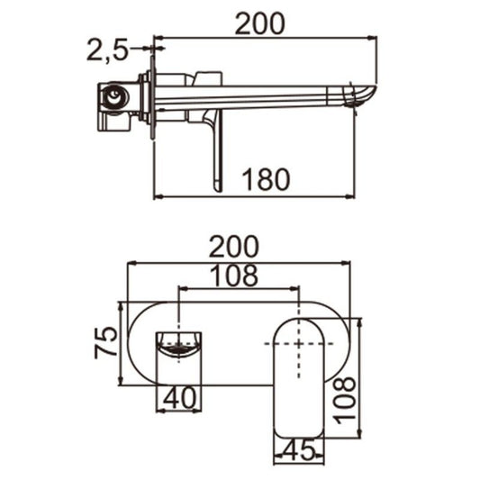 VOG Chrome Bathtub/Basin Wall Mixer With Spout(color up)