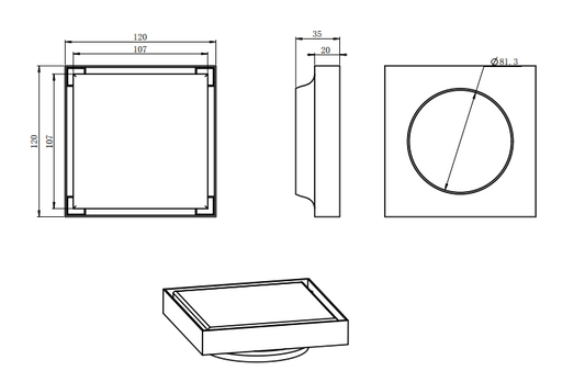 Brushed Yellow Gold Shower Grate Floor Waste Drain Smart Insert Tile 120*120mm(81.3mm Outlet)