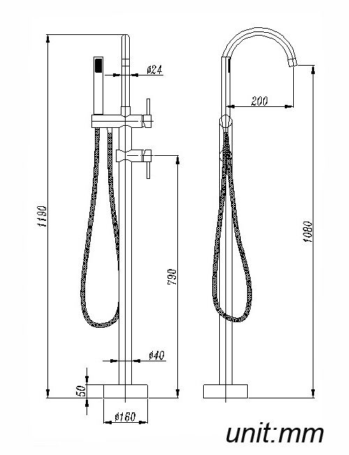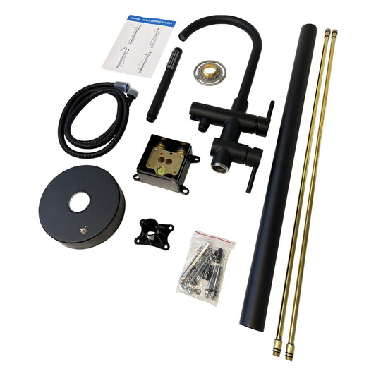 Round Black Freestanding Bath Mixer With Handheld Shower