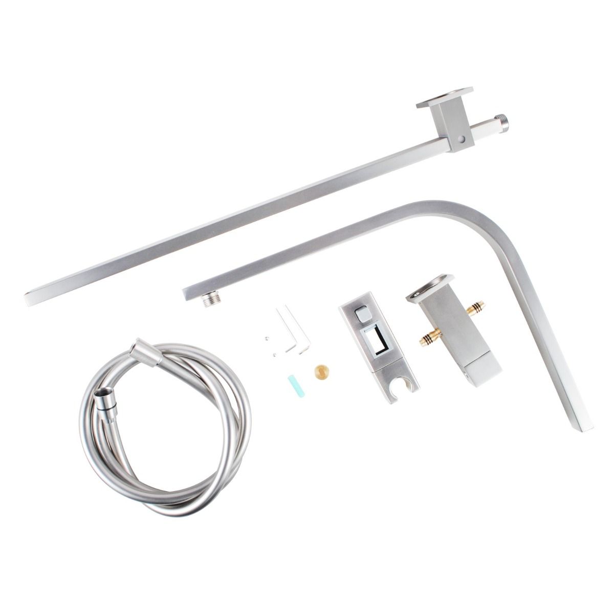 Add this 10" inch Square Slim Shower Set with Handheld Spray Head to your bathroom collection. The shower rail is made of solid brass with Brushed Nickel finished. It is very easy to install - the shower head can be swapped yourself easily. This square shower set can surely match with any bathroom look.