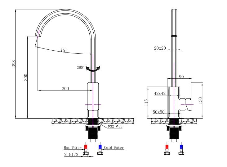 The kitchen mixer is finished with matte black giving it that modern feel for your kitchen. The mixer is a perfect curve at the top and follows the round edge through out the design giving the kitchen mixer a overall softer look. But it's not all about looks. This kitchen mixer features a 360 degree swivel and lever for temperature control and is also fitted with a ceramic disk for long lasting use.