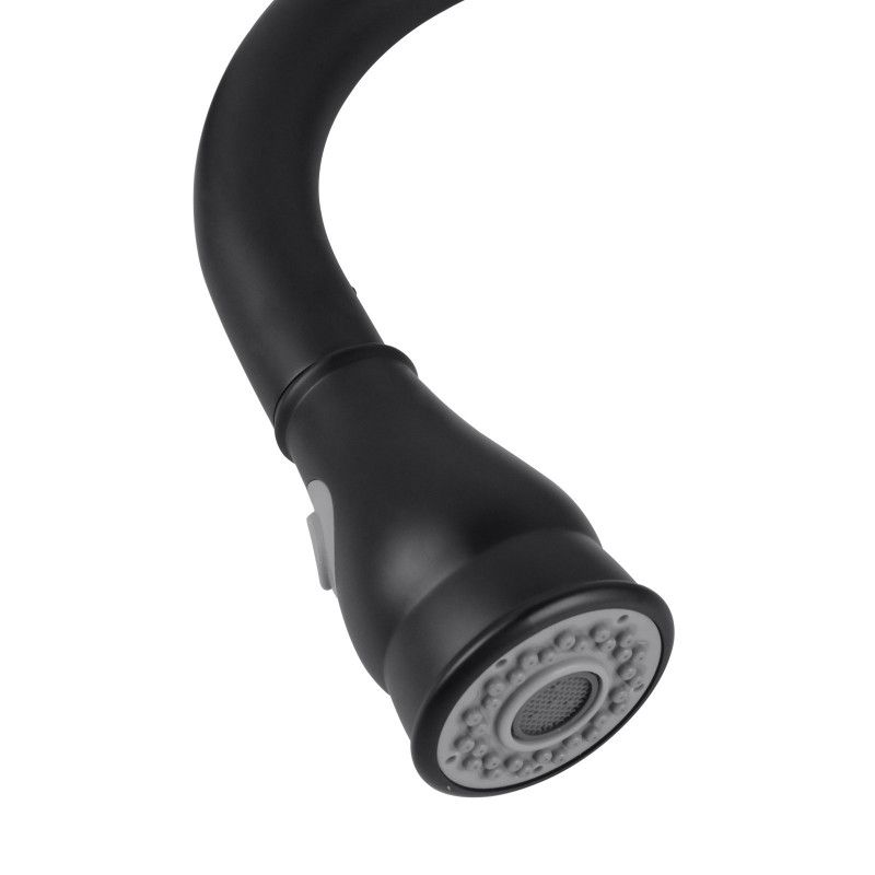 This gorgeous mixer has a modern twist on a classical design. This fancy mixer is stunning in both the looks and durability department. The curved body suits any kitchen needing a more comfortable feel, while the matte black finish gives the mixer a modern feel. This mixer's interior construction is made up of brass giving it a 10 year warranty. The head pulls out length 400-600mm that is retractable and allows you to control the direction of water. The button on the pull out hand held gives the choice between a jet and stream of water. So for a practical, comfortable looking kitchen mixer, look no further.
